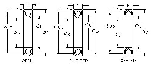 | Furat | Külső átm. | Föld átmérője (L1) | Föld átmérője (L2) | Dinamikus (radiális) | Statikus (radiális) | Thrust newtons3 | Moment N-m3 | (font) |