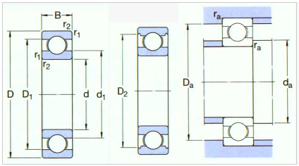 | With shiled | Nyitott típus | VV tömítéssel | DD tömítéssel | d | D | B | B1 | r (perc) | Kr. | | Cor | Kr. | | Cor | Zsír | Olaj | da (perc) | db (max) | Da (Max) | Db (perc) | ra (max) | rb (max) | Nyitott típus | With shiled |